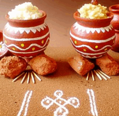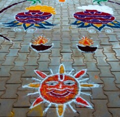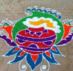 (preparing auspicious designs with rice )